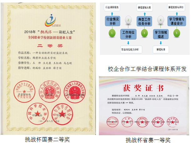 工业机器人技术专业成立于2016年,目前该专业在校生达150多人,规模逐年扩大,是公司的重点建设专业,教学成果喜人。2018年在“挑战杯-彩虹人生”全国职业院校创新创效创业比赛中获二等奖,河南省选拔赛一等奖;在2019年全国职业院校技能大赛河南选拔赛“工业机器人技术应用”项目获优秀奖;两届鹤壁市创意创新机器人竞赛“工业机器人应用赛”项目中获一等奖2个,二等奖3个,三等奖3个。员工参加2020年、2021年、2022年、2023年全国职业院校技能竞赛河南省选拔赛获得一等奖3项,二等奖4项,三等奖2项。2019年9月与武汉金石兴机器人自动化工程有限公司合作办学,开启了校企合作之路,深度开展产教融合,进一步明确专业定位,共同制定人才培养方案;根据岗位需求和职业核心能力,建立满足高素质技术技能人才需求的工学结合课程体系;采用本校教师+企业工程师共同授课的项目化教学模式,深化教学改革。