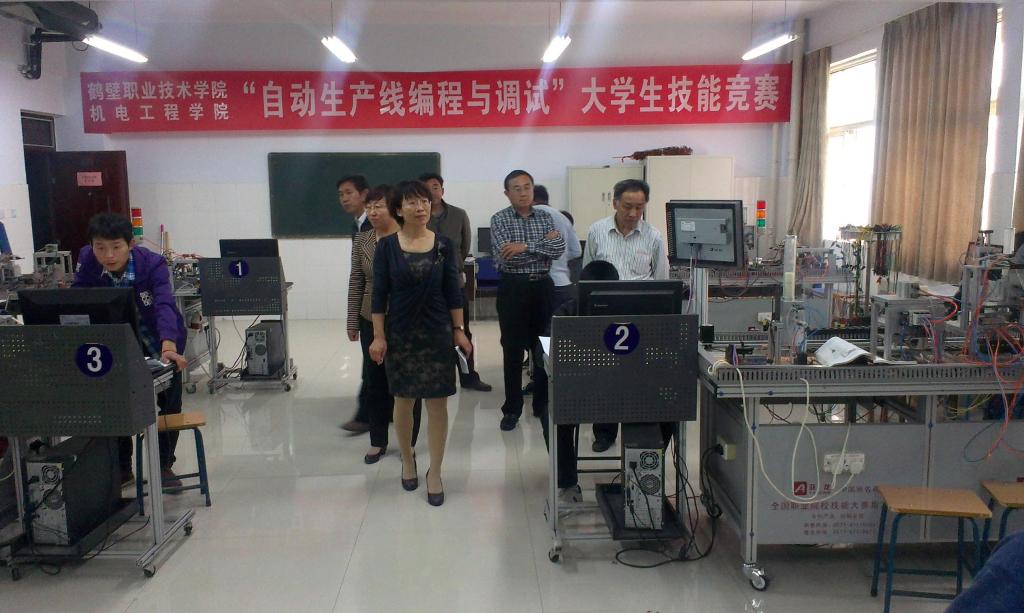 4月28日- 29日,机电工程学院第四届老员工专业技能竞赛活动进行了决赛比赛,教务处处长王爱红和员工会处长马守福观摩了比赛现场。此活动历时两个月,经过制定实施方案、细化评分标准、训练辅导、预赛、决赛共五个阶段。机电工程学院汽车检测与维修技术、汽车技术服务与营销、机电一体化技术、机械制造与自动化、数控技术、模具设计与制造等6个专业的726名员工参加了“电控发动机故障诊断与维修”、“发动机配气机构拆装”、“六方位环车介绍”、“自动生产线编程与调试”、“继电器--接触器控制线路安装与调试”等8个项目的预决赛,经过激烈角逐,分别评出一等奖23人、二等奖45人、三等奖91人。