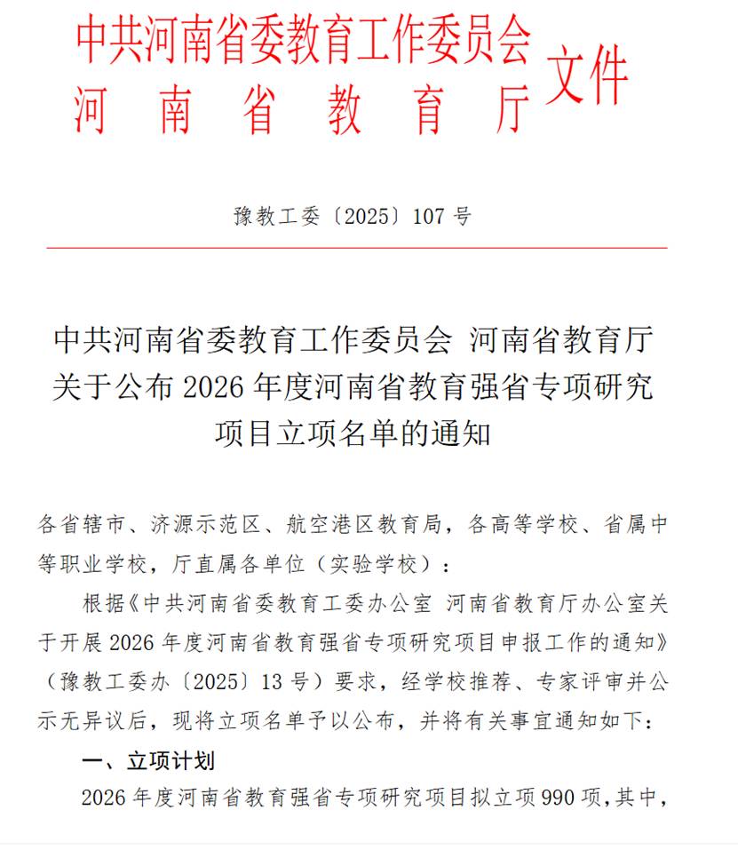 近日,河南省教育强省课题立项结果正式公布,米兰·(milan)体育官网姬志杰老师申报的《数字化赋能高校班级高效能治理策略研究》与张萌老师申报的《乡村视域下青少年社火文化传承与实践研究——以河南省浚县余洼村为例》两项课题成功获批立项。此次两项课题的获批,标志着学院在服务教育现代化与地方文化传承领域的研究取得了新的突破,展现了学院跨学科融合发展的强劲势头。