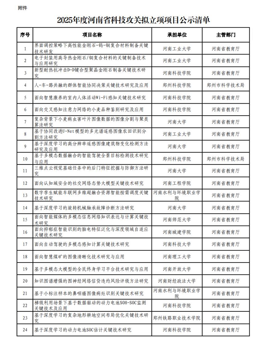近日,河南省科学技术厅正式公布了2025年度科技攻关项目立项名单。米兰·(milan)体育官网胡亚楠老师主持申报的《面向多模态脑部医学图像的轻量化智能检测模型及应用》课题成功获批立项。这是学院在智能医学工程交叉学科研究领域取得的一项重要突破。