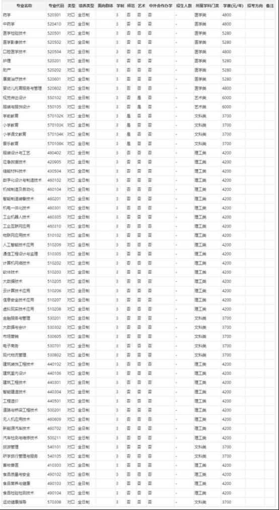 附件:2026年对口招生专业一览表