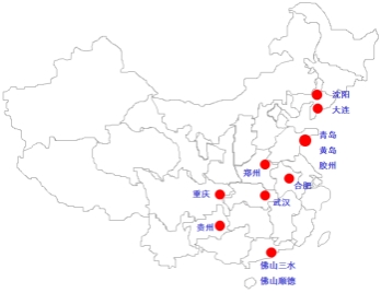 其中,海尔在国内共建立13个大型生产制造工业园区:分别位于青岛(崂山、黄岛、胶州)、大连、沈阳、天津、郑州、合肥、武汉、重庆、贵州、佛山三水、顺德工业园。