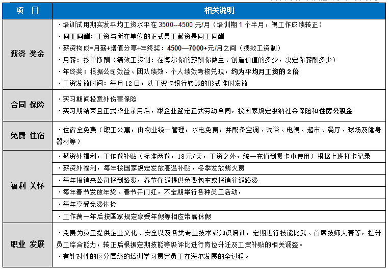 一、海尔招聘仅面向正规大、中专及具备同等办学资格的院校,未委托任何外部机构及个人进行招聘。二、海尔招聘不收取任何费用(包括但不限于报名费、培训费、押金等)。