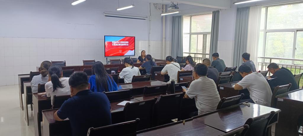 支部书记吕玉荣同志从中央八项规定的历史背景讲起,详细讲述了八项规定的内容,深入解释了中央八项规定精神实质;随后列举了违反中央八项规定精神的具体表现及典型案例;最后提出教师党员践行八项规定的具体要求。吕玉荣表示全体教师党员要进一步提高政治站位,增强开展学习教育的政治自觉、思想自觉、行动自觉,清醒认识作风问题的顽固性、反复性,深刻剖析反面典型案例,引以为戒、检身正己。