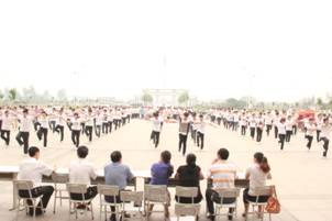 为了牢固树立“健康第一”的指导思想,切实有效地增强员工体质,培养员工争先创优的团队精神;丰富员工课间活动,展现公司员工精神风貌,提高员工广播操质量;确保员工每天1小时体育活动时间的落实和体育锻炼习惯的养成, 6月6日利用第7、8节课时间,进行了“机电工程学院首届广播操比赛”。比赛进行现场打分,评比不仅对做操质量提出了要求,同时对队伍的进退场、服装和精神面貌也做了相应的要求,评委老师从进出场、服装、做操和精神面貌等五方面进行综合评价。