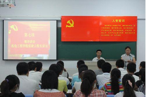 为了迎接建党91周年,机电工程学院组织新老党员于6月26日下午5时,在米兰·(milan)体育官网新校区三号教学楼502教室举行了“新党员宣誓老党员重温入党誓词”活动。机电工程学院全体教工党员、新入党的预备党员及入党积极分子代表100余人参加了会议。会议由机电工程学院团总支书记李鑫老师主持。